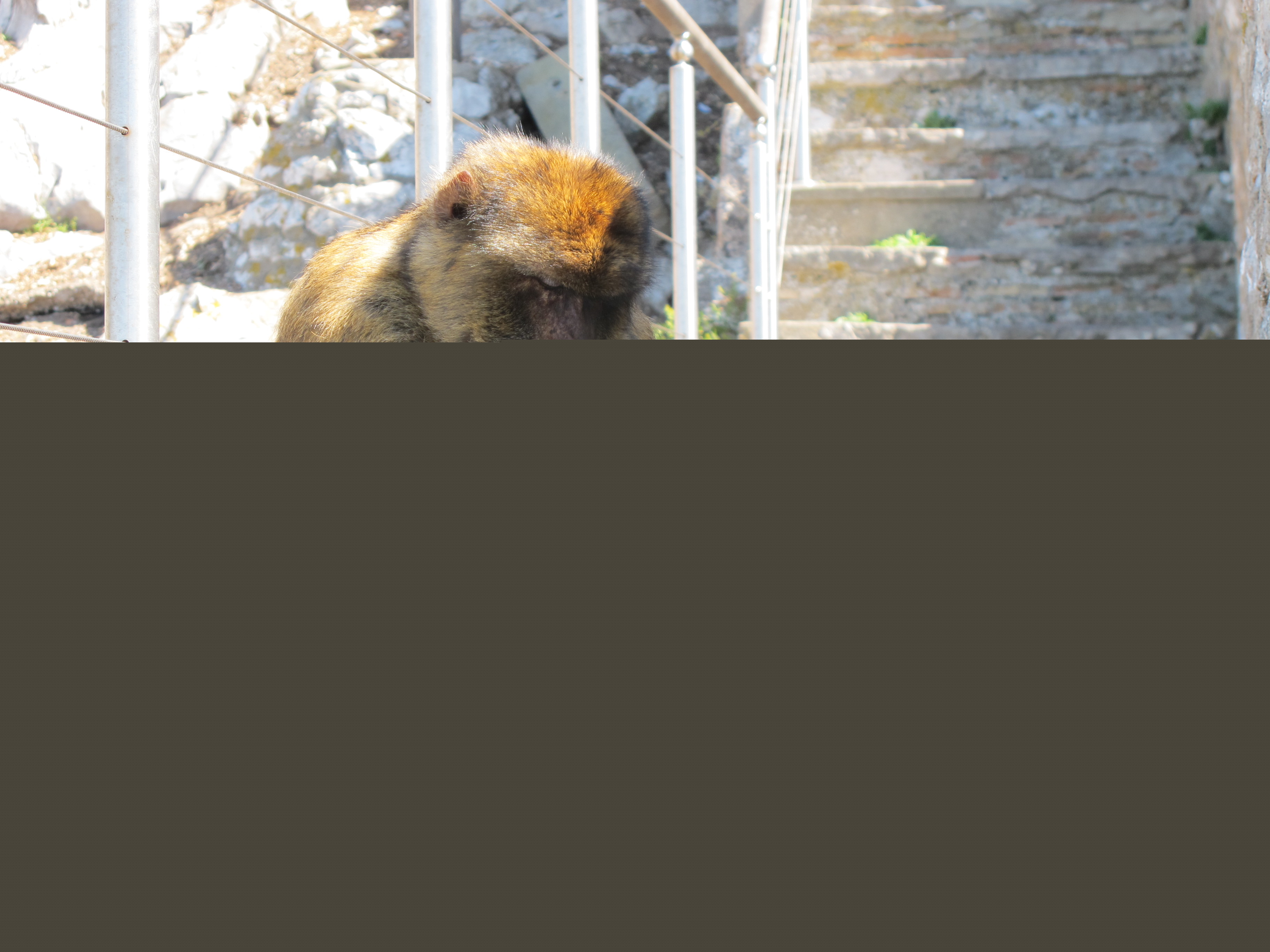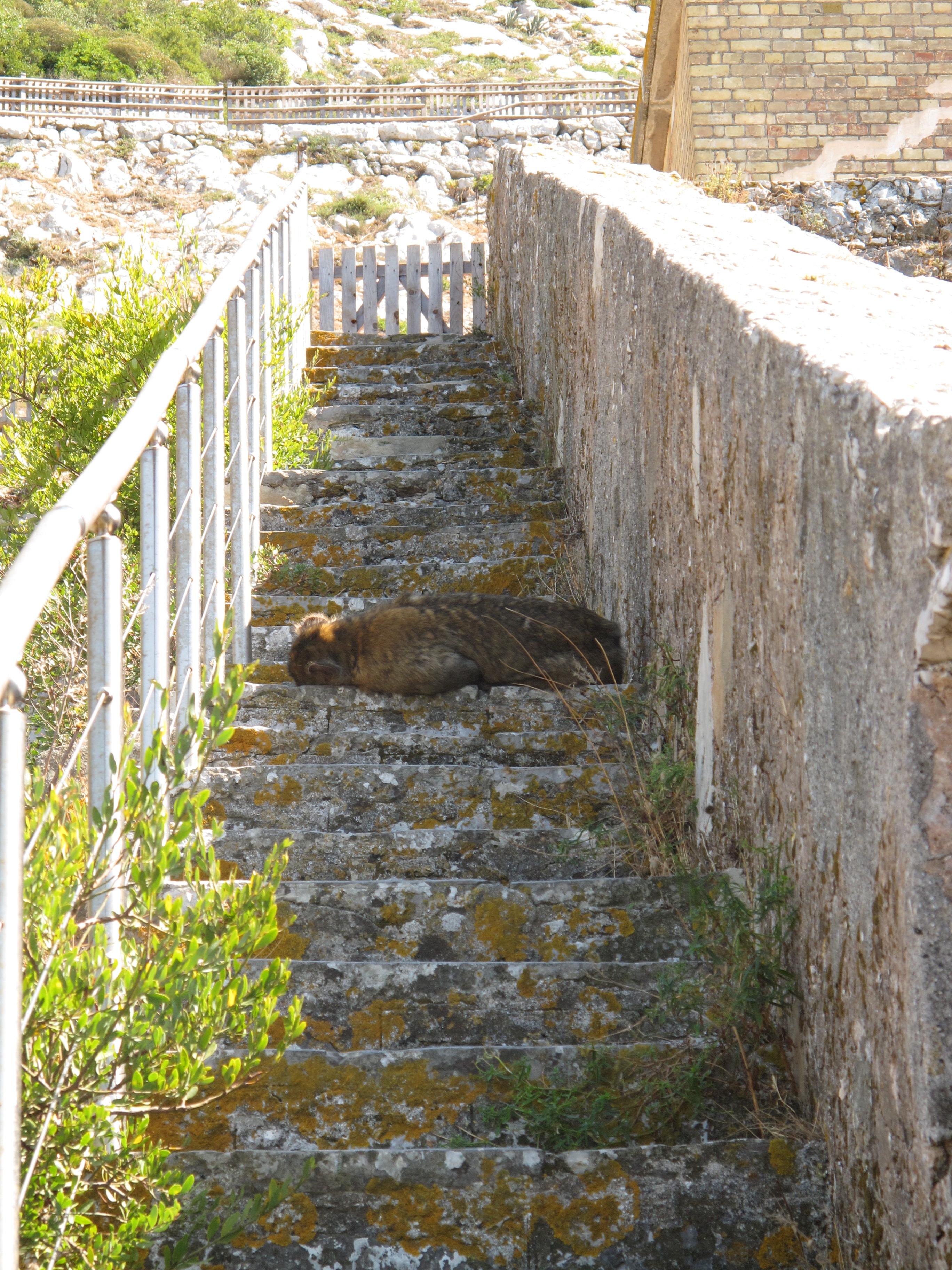 ...only to find, a heartbreaking storey or two from the top of the first flight, a monkey on the very narrow steps, sleeping. When I made a noise, he looked at me grumpily and laid his head back down. Hmmm.. STEPPING OVER a basically wild animal with no fear of man, rather exposed to any irritated response.