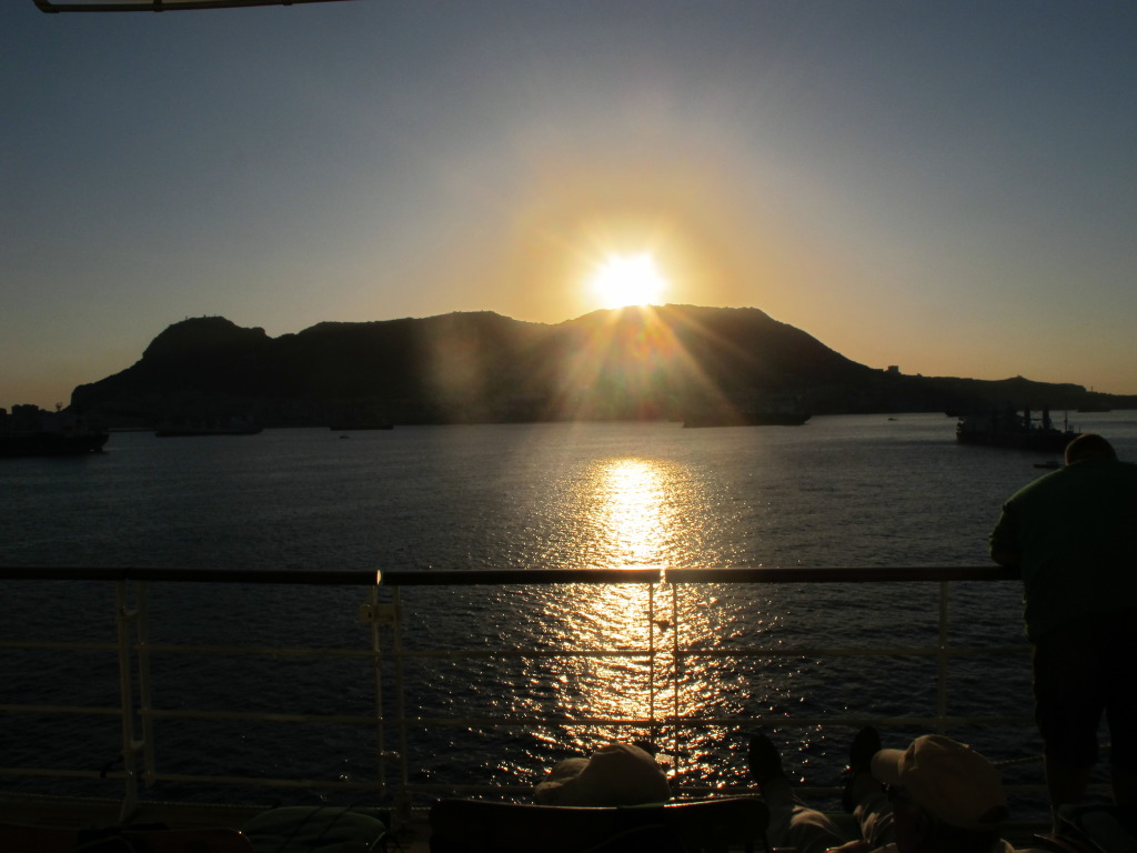 It remains cool to have a view out from the room. Since we always arrive by early morning, you wake up to see something different every port. This morning, it was sunrise over the Rock of Gibraltar.