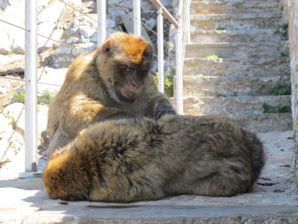 At the top, everybody goes mad photographing and (quite illegally, 500-pound fine) feeding the local monkeys, protected by the government.