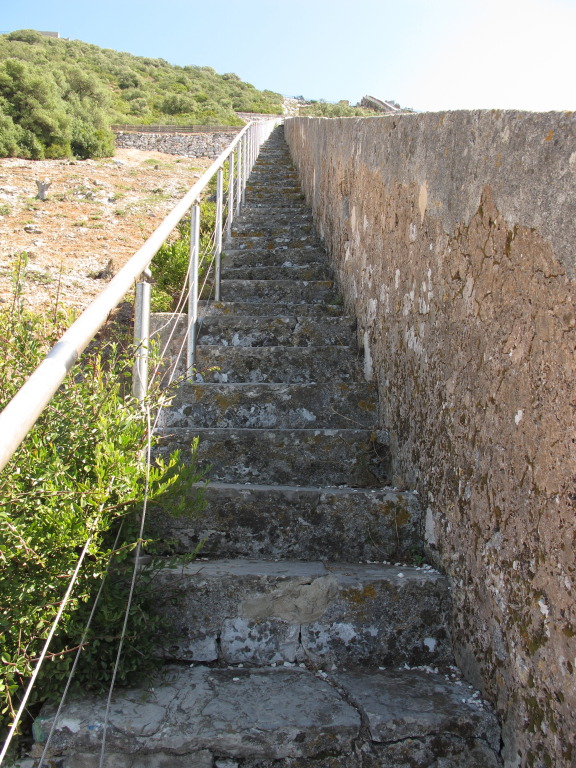 These are the stairs we were looking for, and finally found, way above the apartments and most of the private homes that cling to the mountainside. Just a lot of stairs.