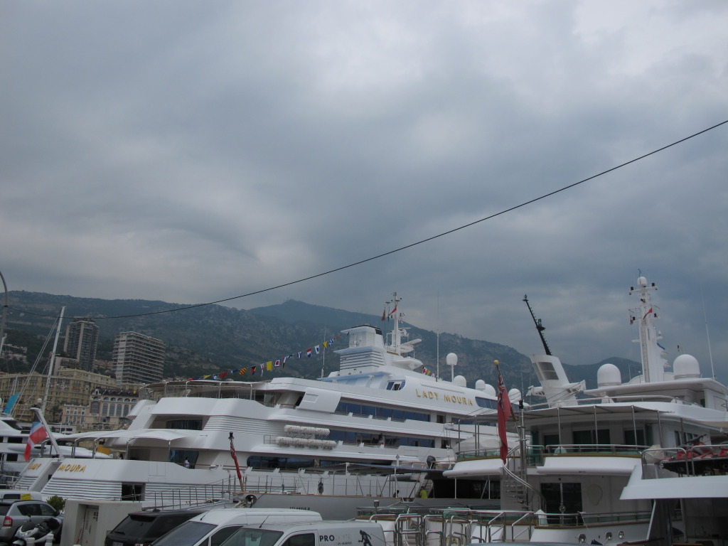 But, because of the climate, the casino, the glamour provided by Grace Kelley, hundreds or thousands of very rich people hang out here to show off to each other, like the Arab prince that owns the 3-story, $100M-ish "Lady Moara" here for the yearly yacht show.