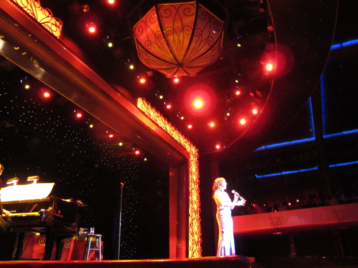 1700: Make it a few minutes late down to Illuminations again, they're showing "Shrek Forever", which we missed in the theatres. A little loud, but good fun; the screen is the same size as most big box theatres on land.