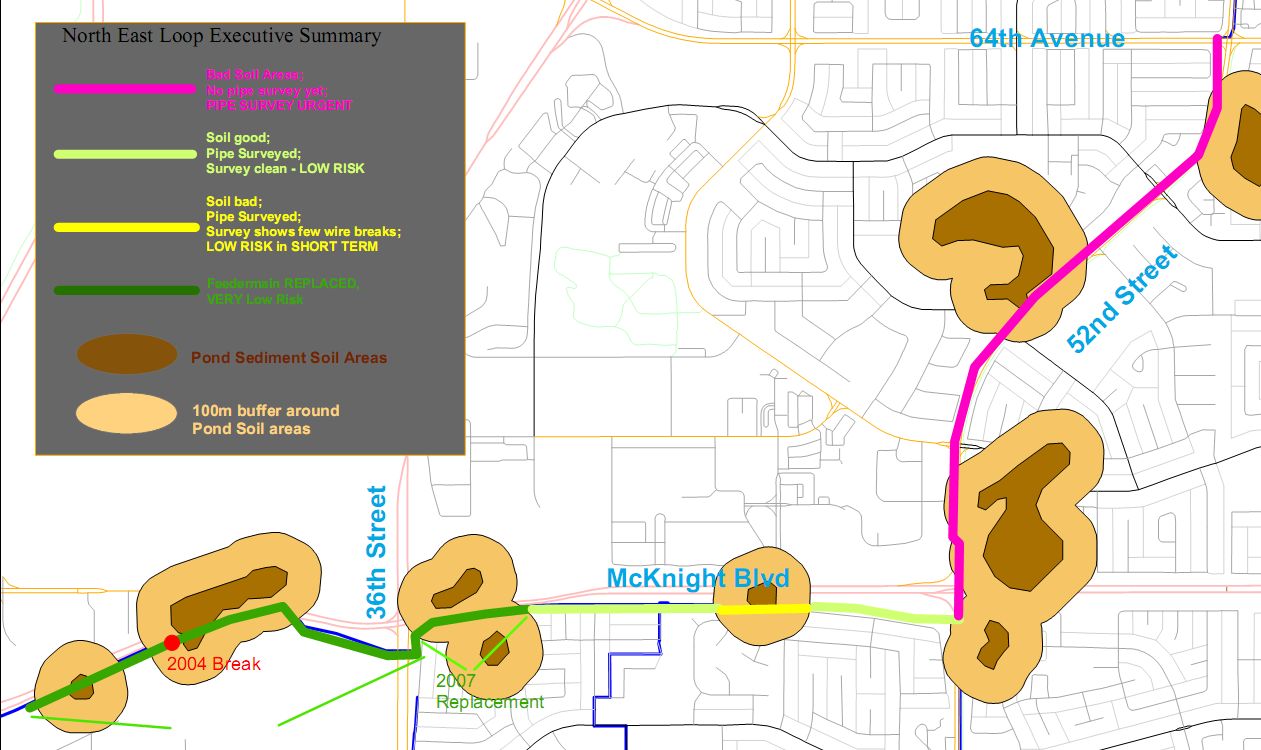 There was a new head of all "Infrastructure Delivery", Michael Thompson, who led all infrastructure projects from any department, and we suspect it was pressure from that high up that made Water cancel the North Calgary Water Servicing Project, after 3 years of work that included some $5M in engineering design and planning. Water projects managers were ready to pull the trigger and break ground, when the plug was pulled instead.