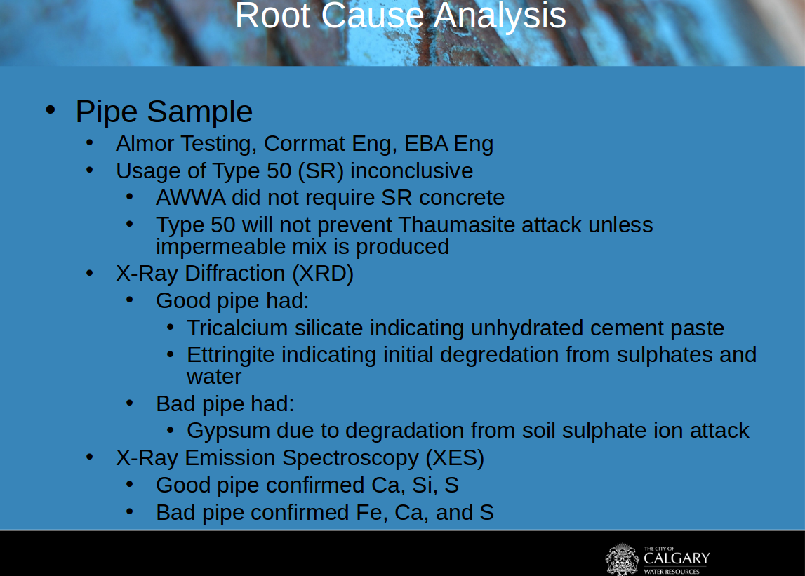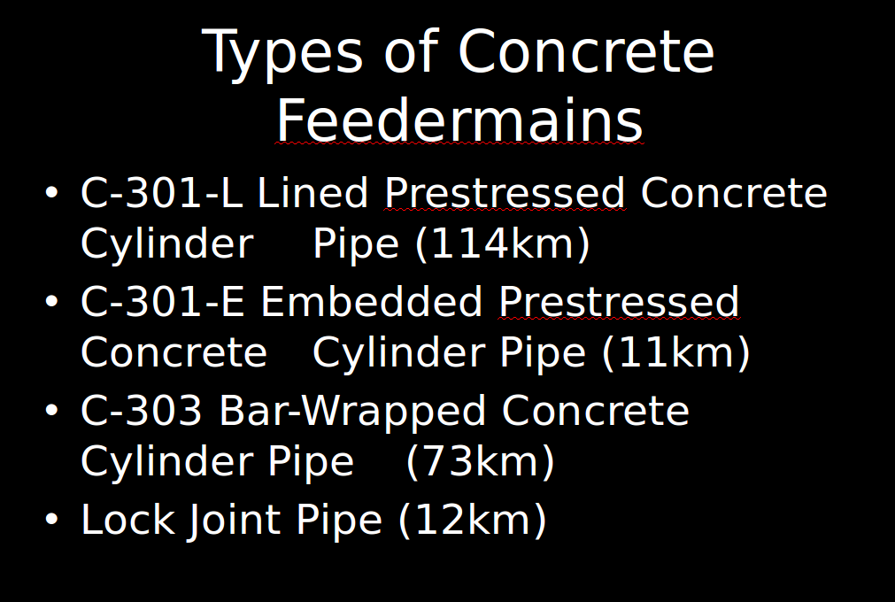The problem with beating us up over that paper, is that I can find you a paper like that, for nearly every pipe-type ever sold. They all did badly, sometime, somewhere. One paper, I wrote, about ductile iron, trashing its performance in favour of PVC plastic. So I was surprised to come to Vancouver 15 years later,and find ductile iron still in use. Calgary, Winnipeg, other prairie cities with black soils now hate ductile iron, but rocky, non-corrosive Vancouver never saw the problem. The pipe that works so well in Calgary, is PVC plastic - but you can find papers from Australia about how brittle PVC was, how badly it worked in their swelling clay soils. Turned out that Australian factories were using a more-brittle formulation, and putting it in the worst soils for that problem.