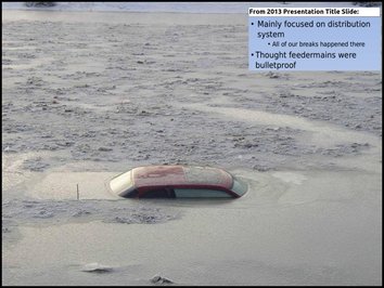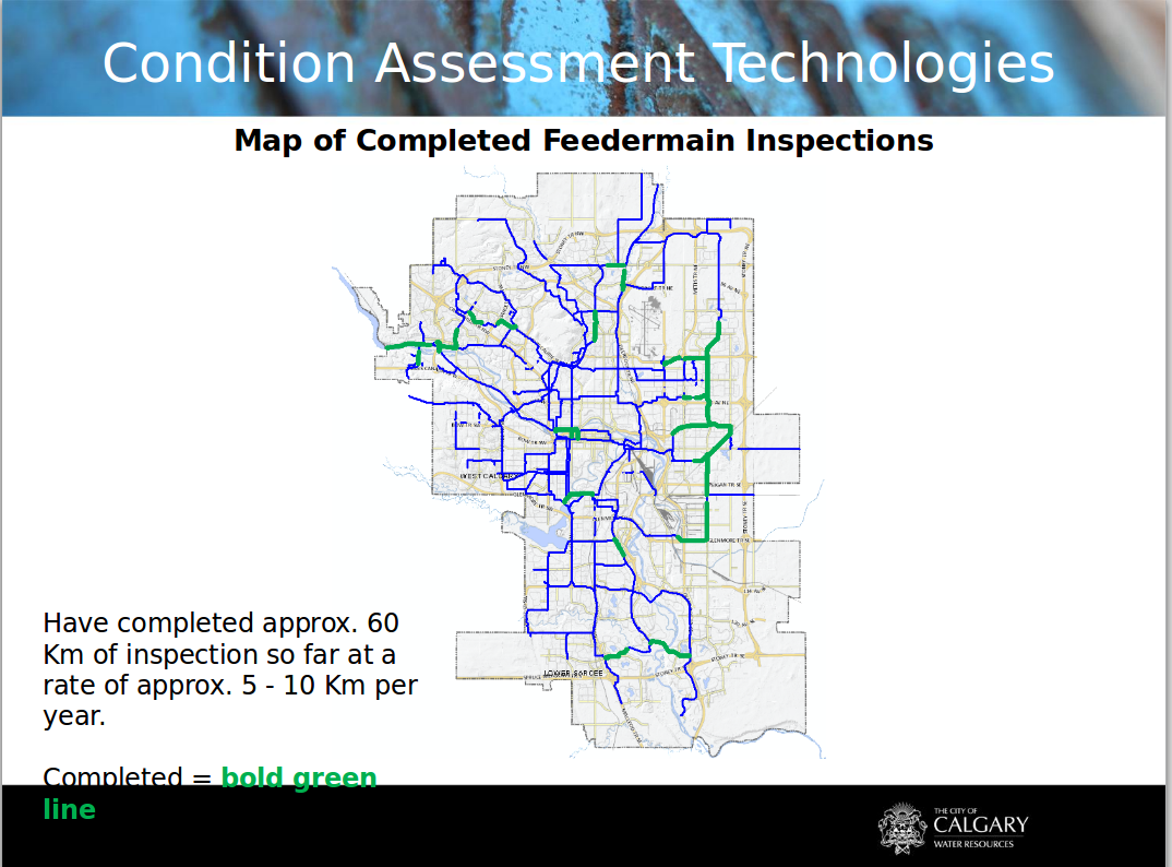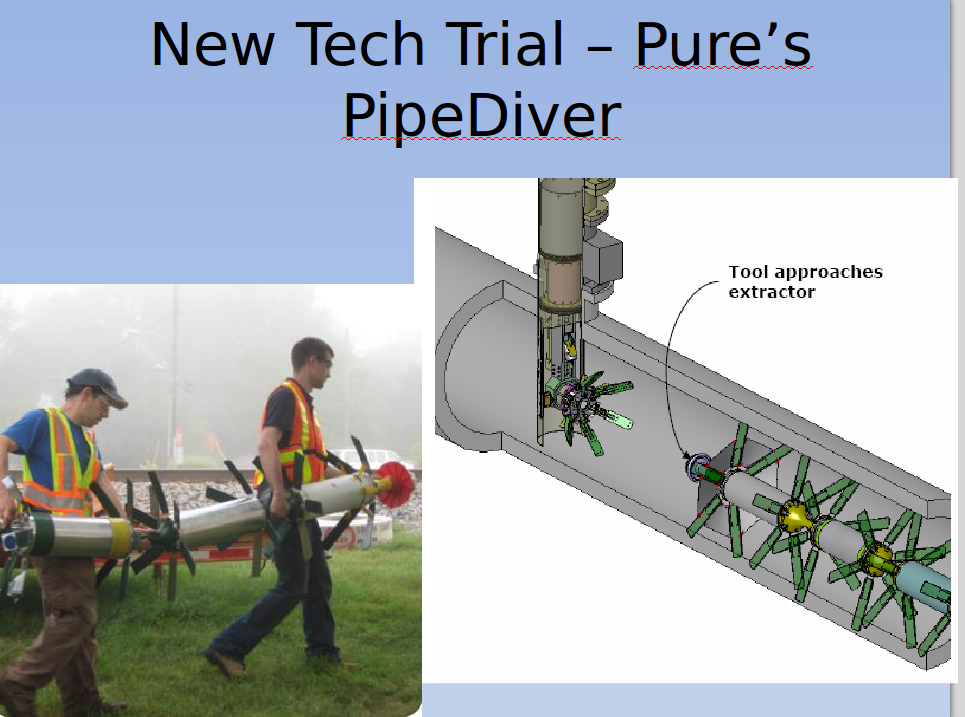 This slide is from that 2013 presentation that was the last I was involved in, while the feedermains-inspection engineer concluded his portion with the triumphant first trial of the PipeDiver, with its airlock insertion mechanism that cost something like a million to install.